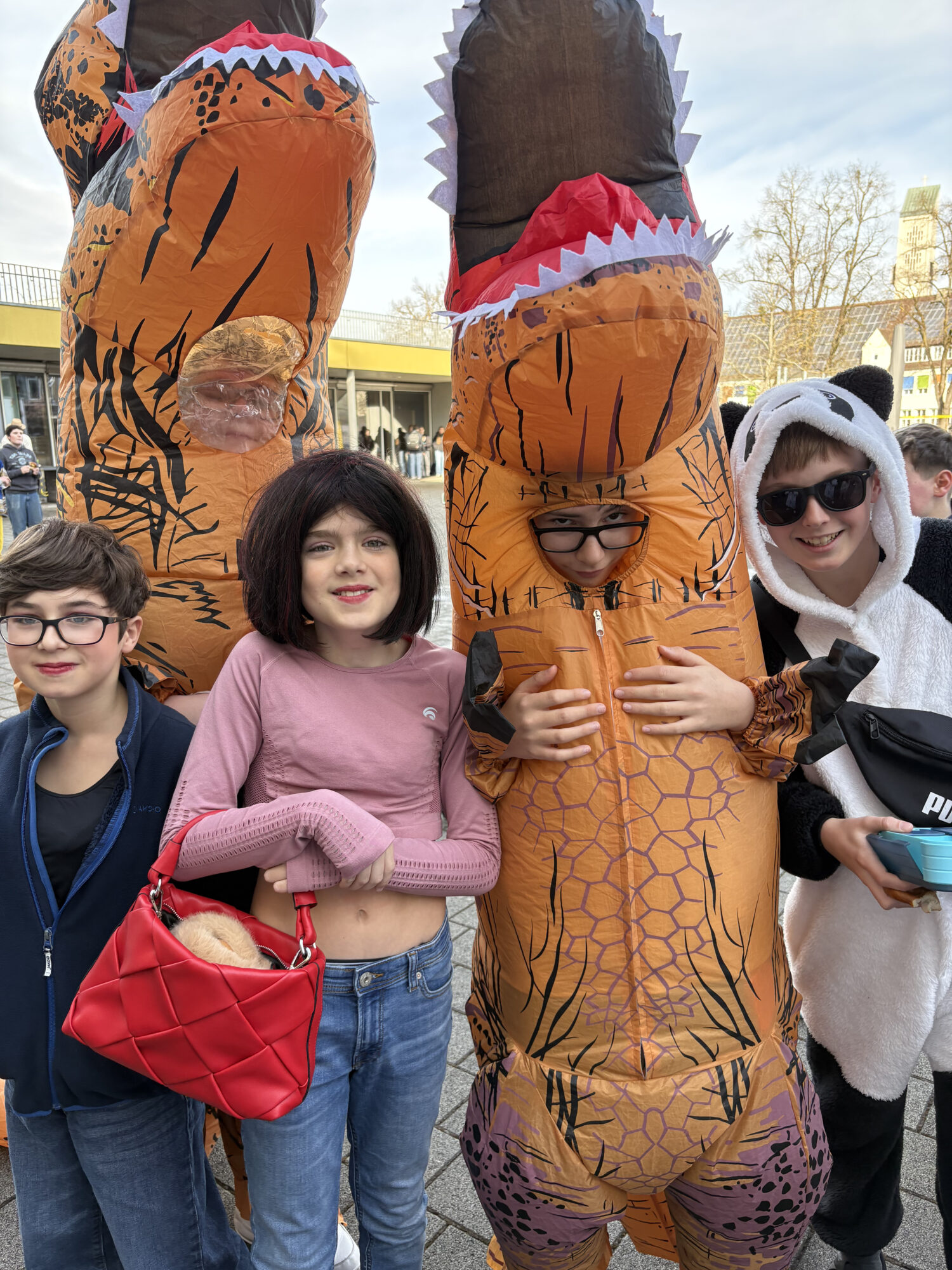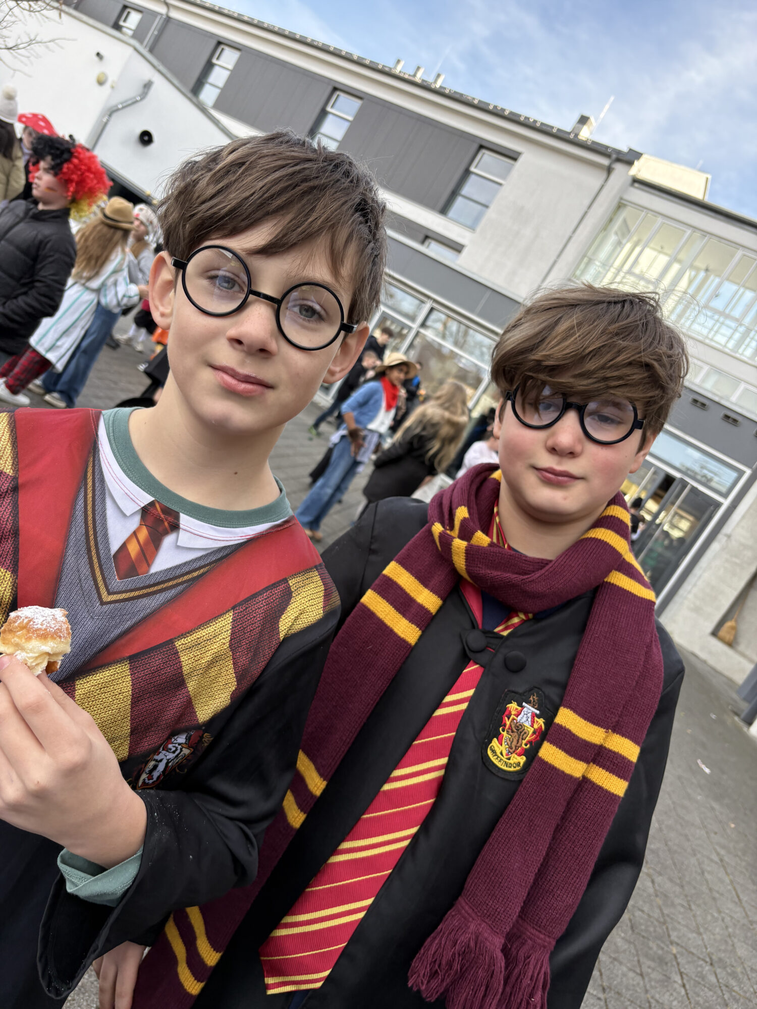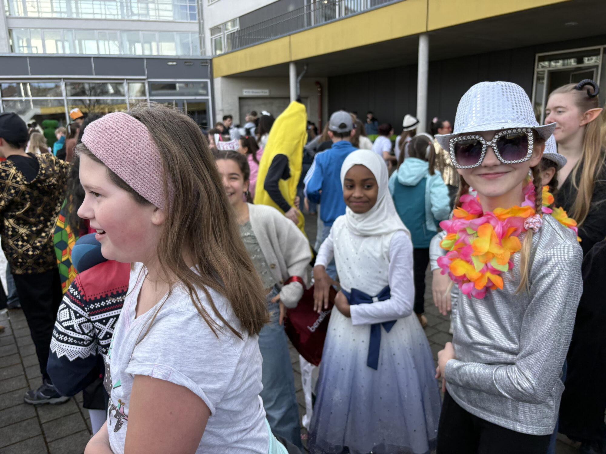 Die Schülerinnen und Schüler durften an diesem Tag verkleidet an die Schule kommen – und so wimmelte es nur von Harry Potters, Shreks, Clowns, Cowboys und -girls, Skifahrern, Kapitänen und vielen anderen tollen Kostümierungen. Sehr schön zu sehen war es auch, dass sich alle an die Vorgabe der Schulleitung gehalten haben, keine Spielzeugwaffen oder Gesichtsmasken mitzubringen.