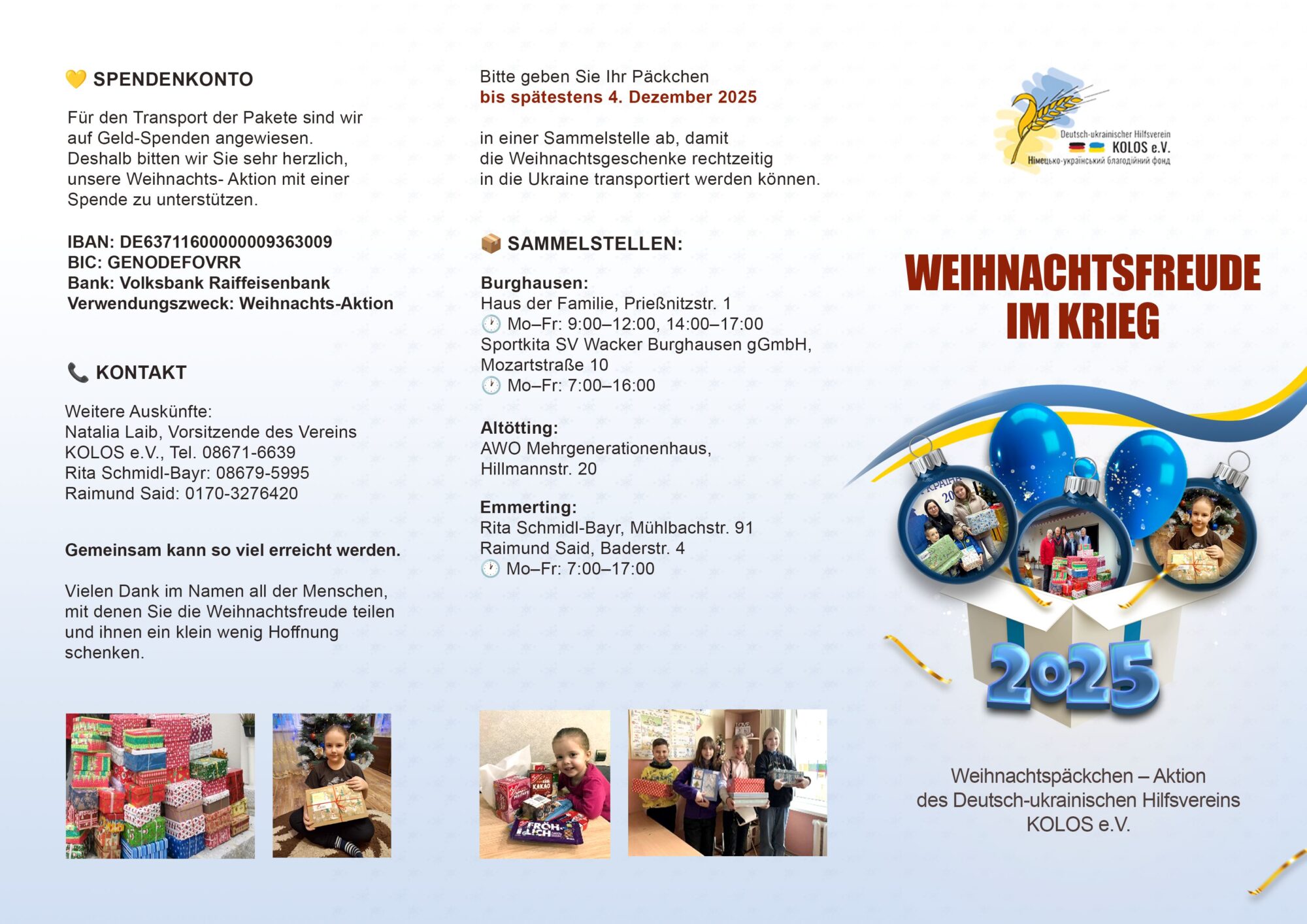 Wir sagen schon jetzt herzlich DANKESCHÖN für alle Spenden, damit es „Weihanchtsfreude im Krieg“ geben kann!“