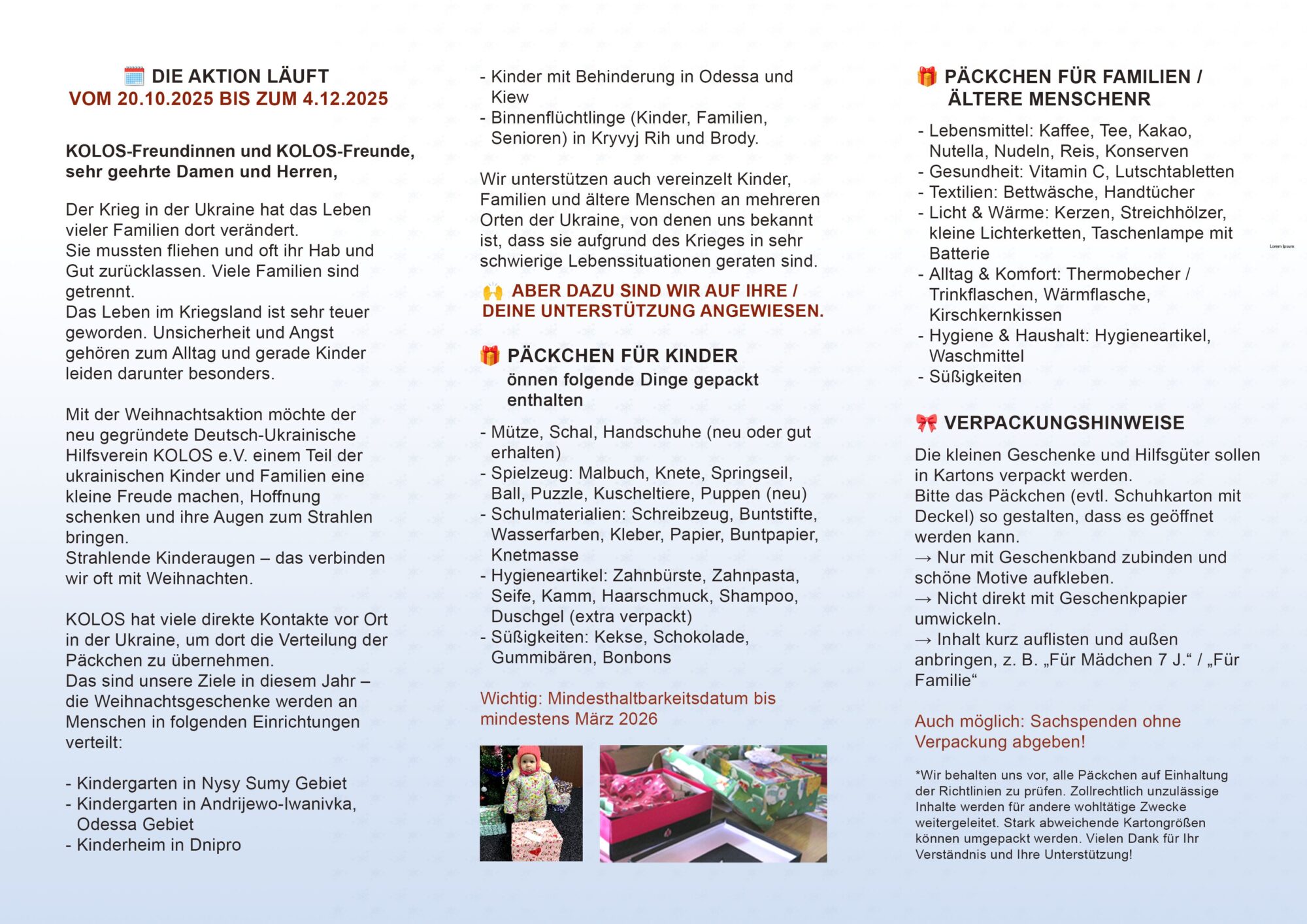 Auch im dritten Jahr in Folge beteiligt sich das AVG an der Hilfsaktion von Kolos e.V. – dem deutsch-ukrainischem Hilfsverein (AWO-Auslandshilfe e.V.).