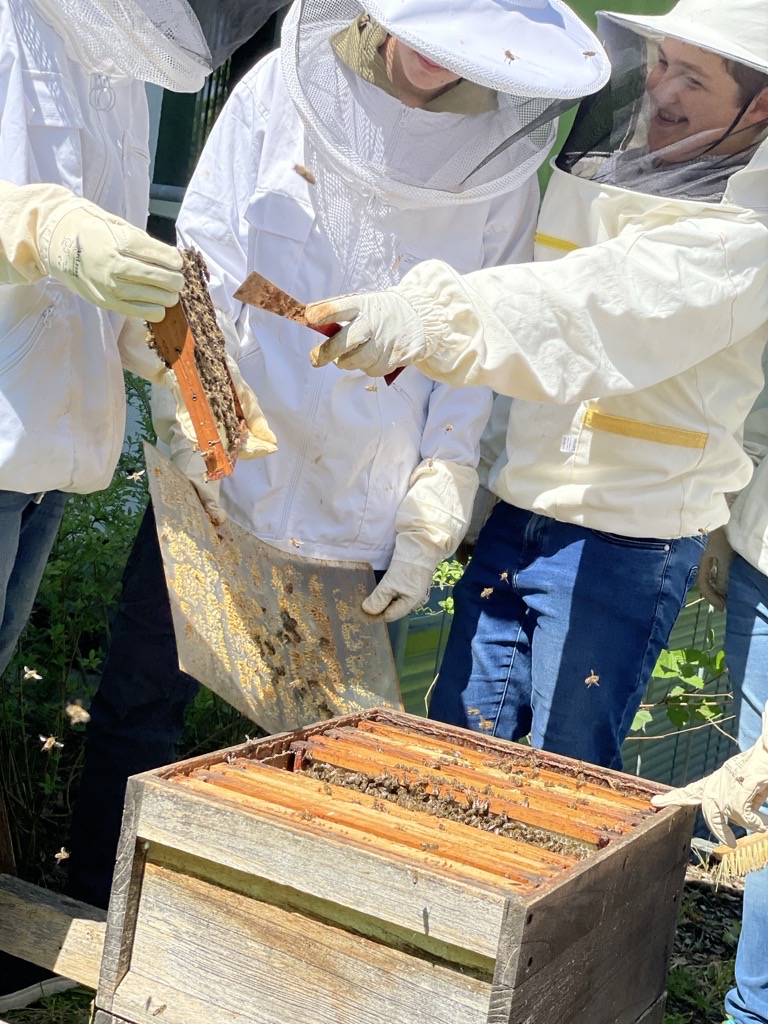 Der Bienen-Arbeitskreis unserer Schule hat Zuwachs bekommen: Seit Kurzem summt und brummt es wieder lebendig – ein neues Bienenvolk ist eingezogen!